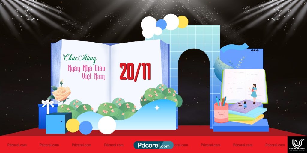 Backdrop chụp ảnh trang trí ngày nhà giáo Việt Nam 20/11 file Corel