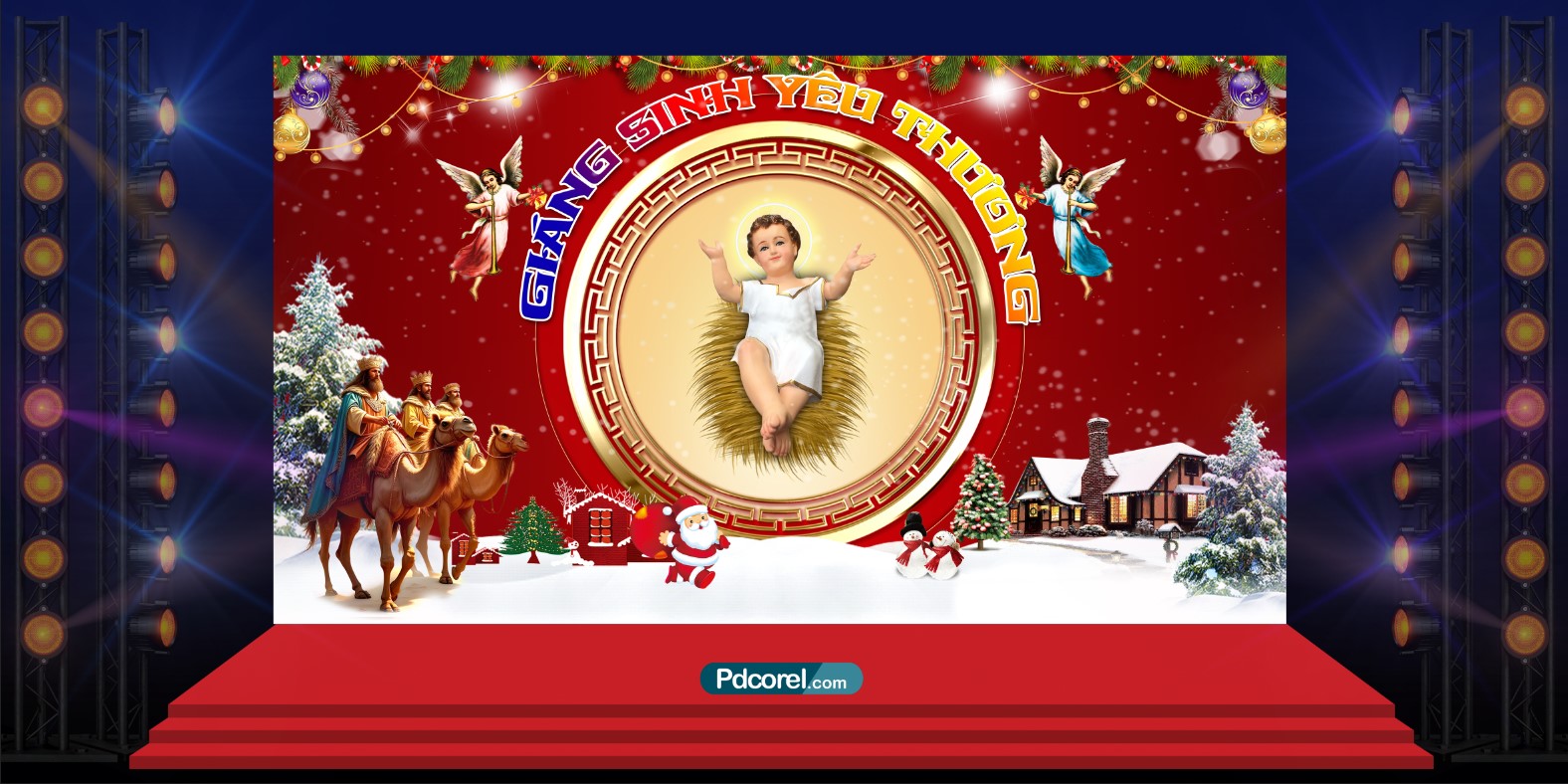Background trang trí giáng sinh vector. File được thiết kế phần mềm CorelDraw x7 giúp bạn dễ dàng chỉnh sửa lại kích thước khi in ấn thi công bắng khung sắt.