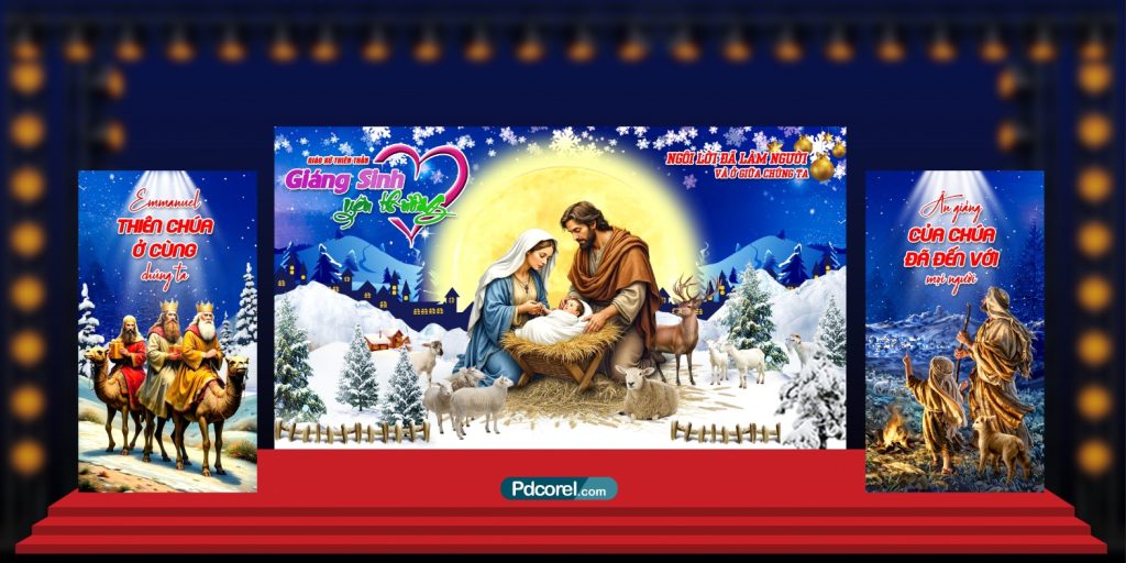 Phông sân khấu Mừng Chúa Giáng Sinh [Backdrop giáng sinh Noel] File PSD 01