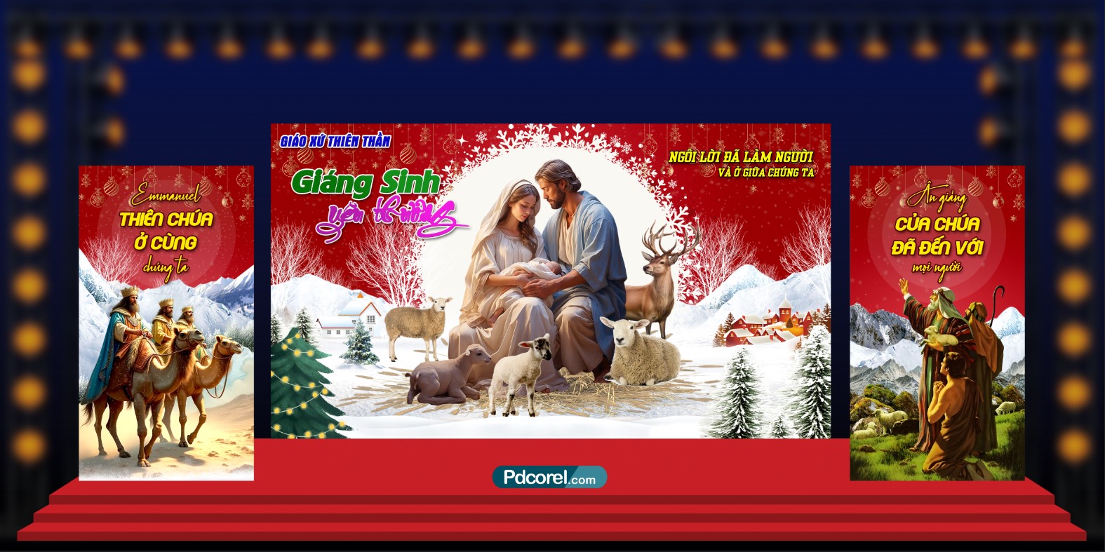 Phông sân khấu Mừng Chúa Giáng Sinh [Backdrop giáng sinh Noel] File PSD 01